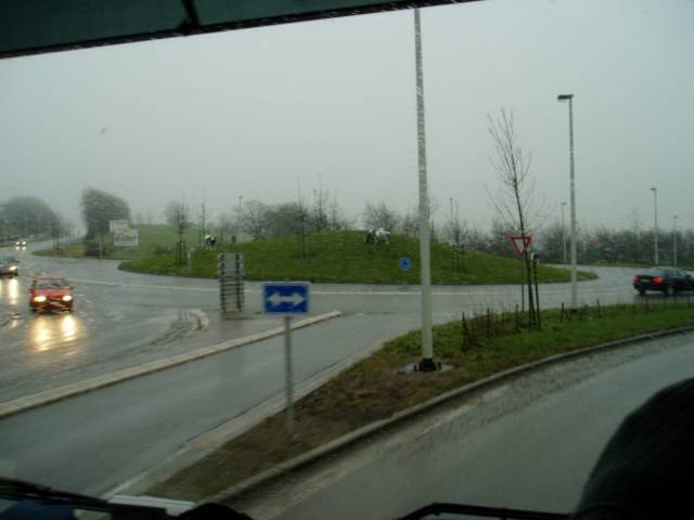 24 kB, Na kruhovém objezdu v Belgii. Uprostřed jsou plastové krávy s pasáčkem