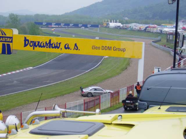 31 kB, Adam Lacko nezvládnul smyk na nových obrubnících a skončil v kačírku.