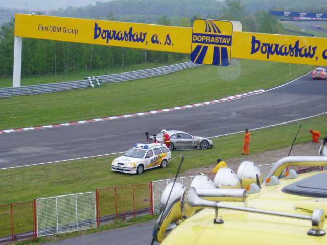34 kB, Adam Lacko nezvládnul smyk na nových obrubnících a skončil v kačírku.